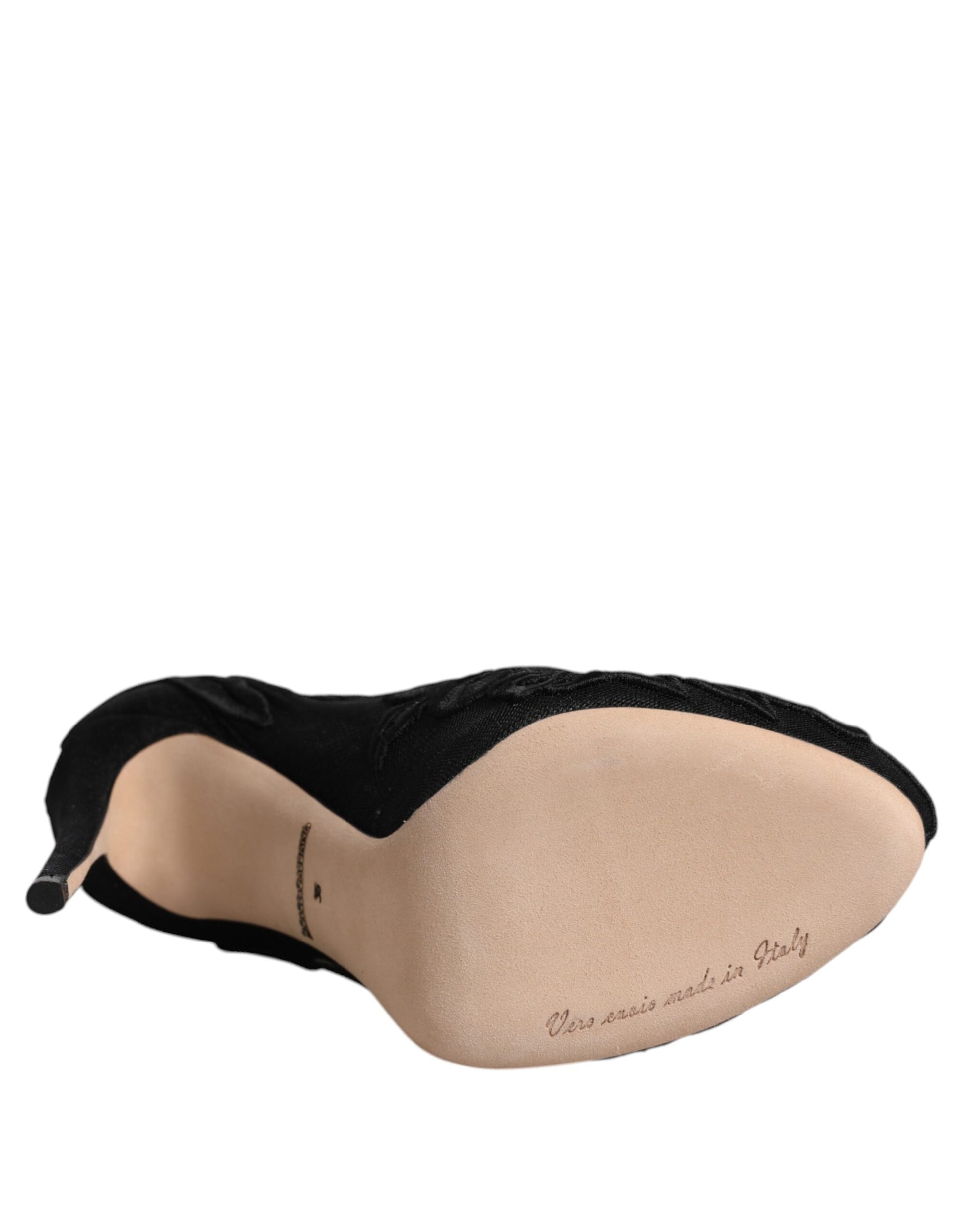 Dolce & Gabbana Schwarze Tüll Stretch Heels Mittlere Wadenstiefel Schuhe