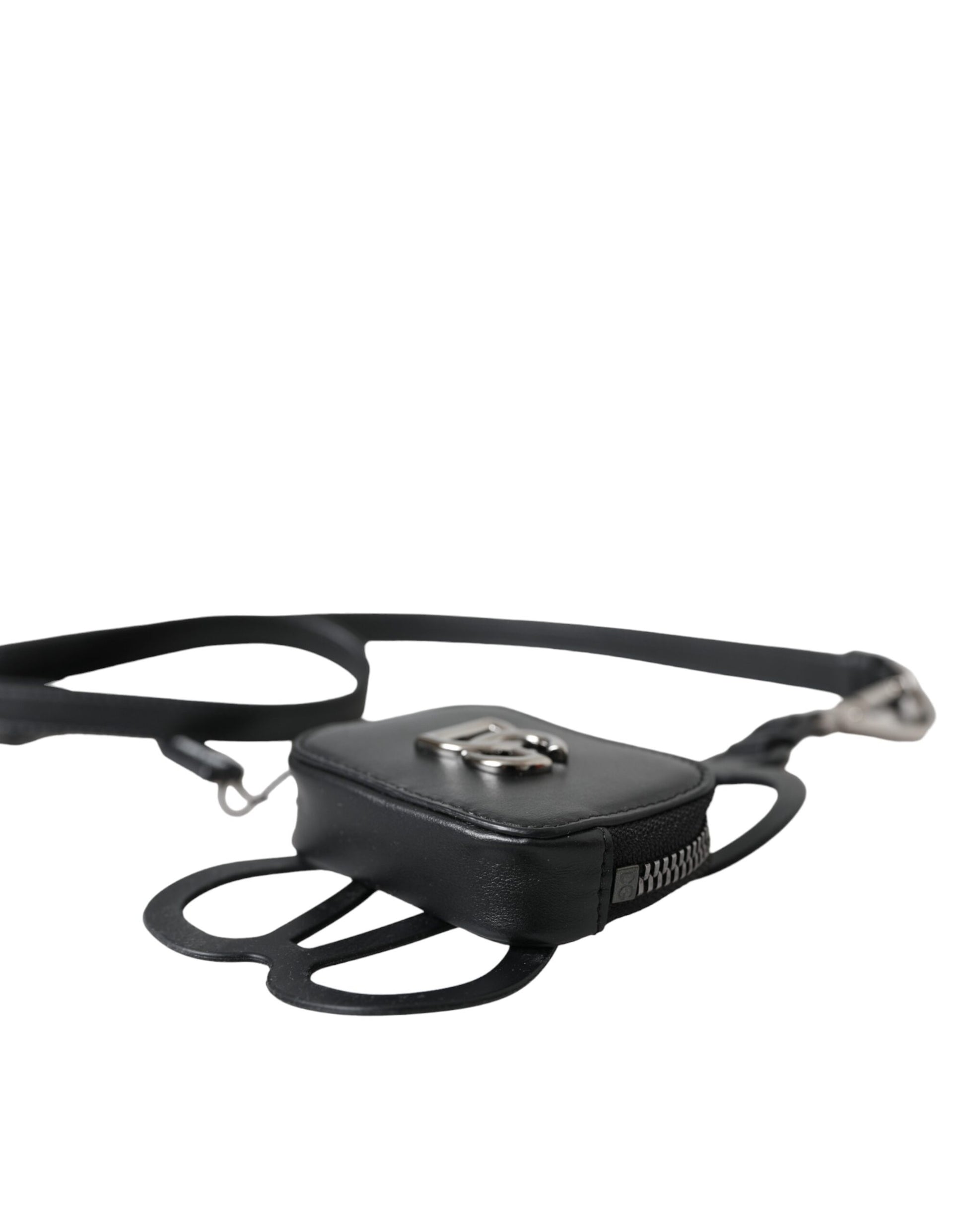 Dolce & Gabbana Schwarzes Kalbsleder DG Logo Münzgeldbörse Lanyard Wallet